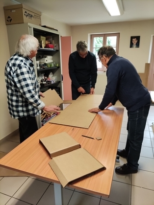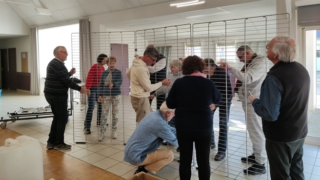 Tout est prêt pour notre expo (fond, chaînes, crochets ...) sans oublier les tableaux