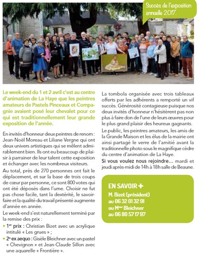 Année après année, Pastels, Pinceaux et compagnie, l'association de peintres amateurs que préside Christian Bizet, prend de l'ampleur. Pas tant en nombre d'adhérents mais en dextérité, savoir-faire et qualité. Le week-end dernier c'est au centre d'animation de La Haye qu'ils avaient posé leur chevalet pour ce qui est traditionnellement leur grande exposition de l'année.