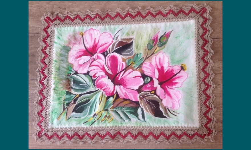 napperon ibiscus roses
